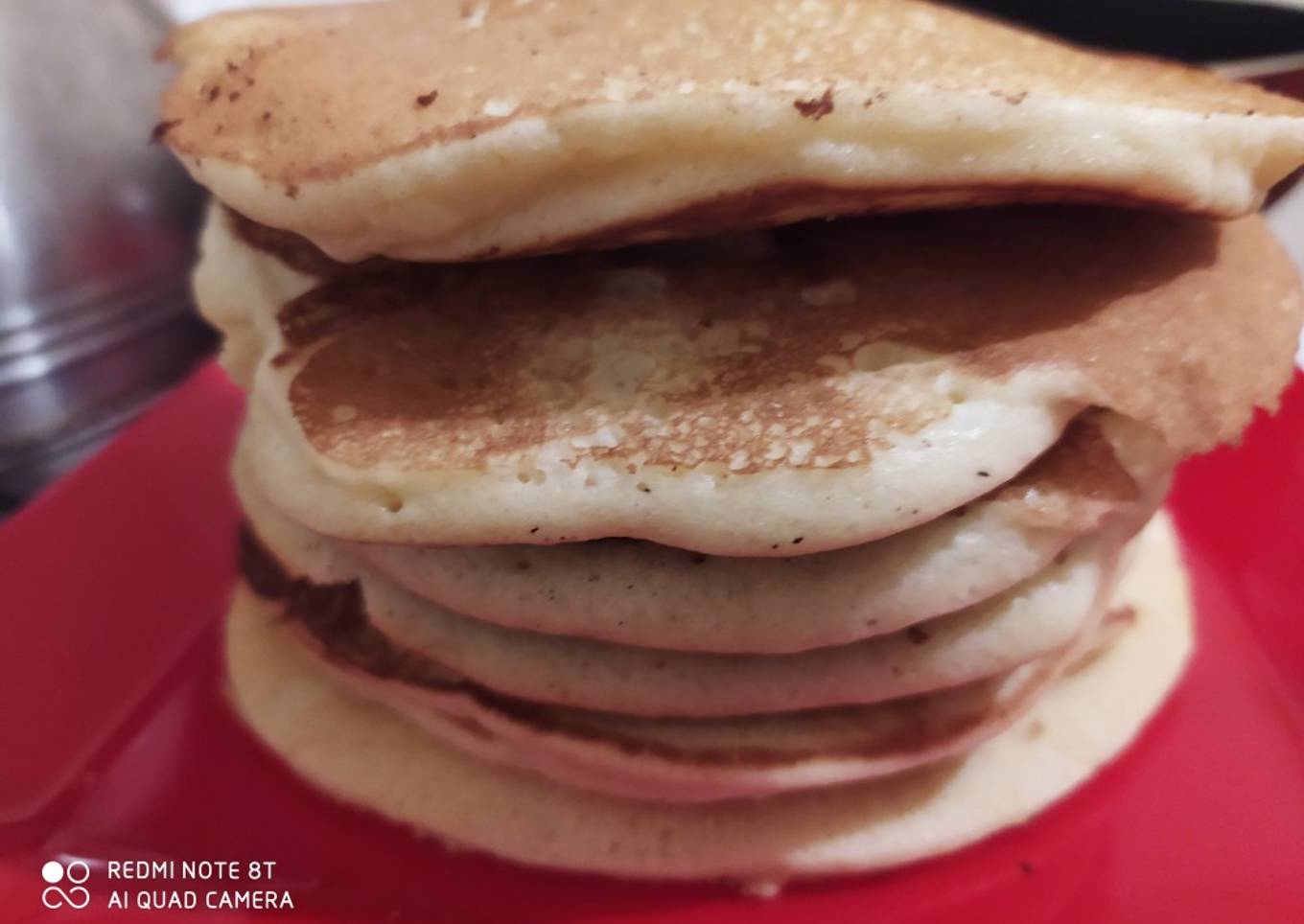 - Luego calentar una sartén y yo le puse aceite en aerosol para que no se pegue. Con un cucharón poner un poco de masa en forma redonda y controlar cuando tome color doradito darlo vuelta y cocinar del otro lado, cocinarlo en fuego medio-bajo para que no se queme la masa