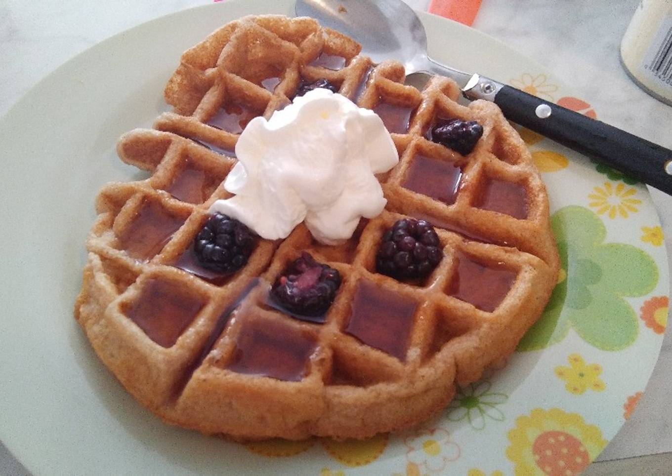 - Poner la mezcla, después que este bien batida. Echarle un poco de spam a la wafflera para que no se pegue