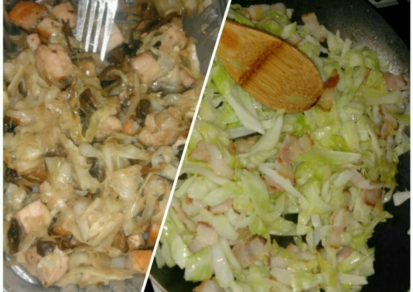 - Se agrega la cebolla, y el ajo, y de manera casi inmediata la col (mismo momento para agregar el champiñón); se sofríe hasta que reduzca un poco y suelte humedad.