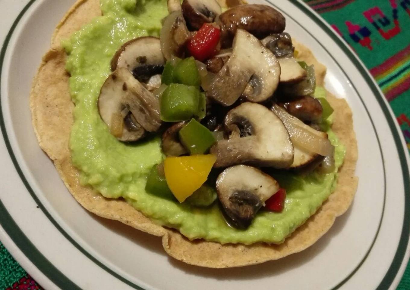 - Untar una tostada con la salsa de aguacate, la mezcla de champiñones y listo a disfrutar!