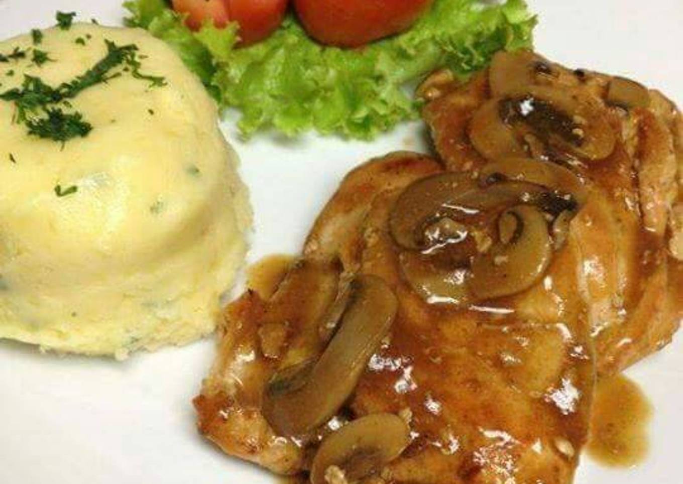 Pechuga de pollo en salsa de champiñones.