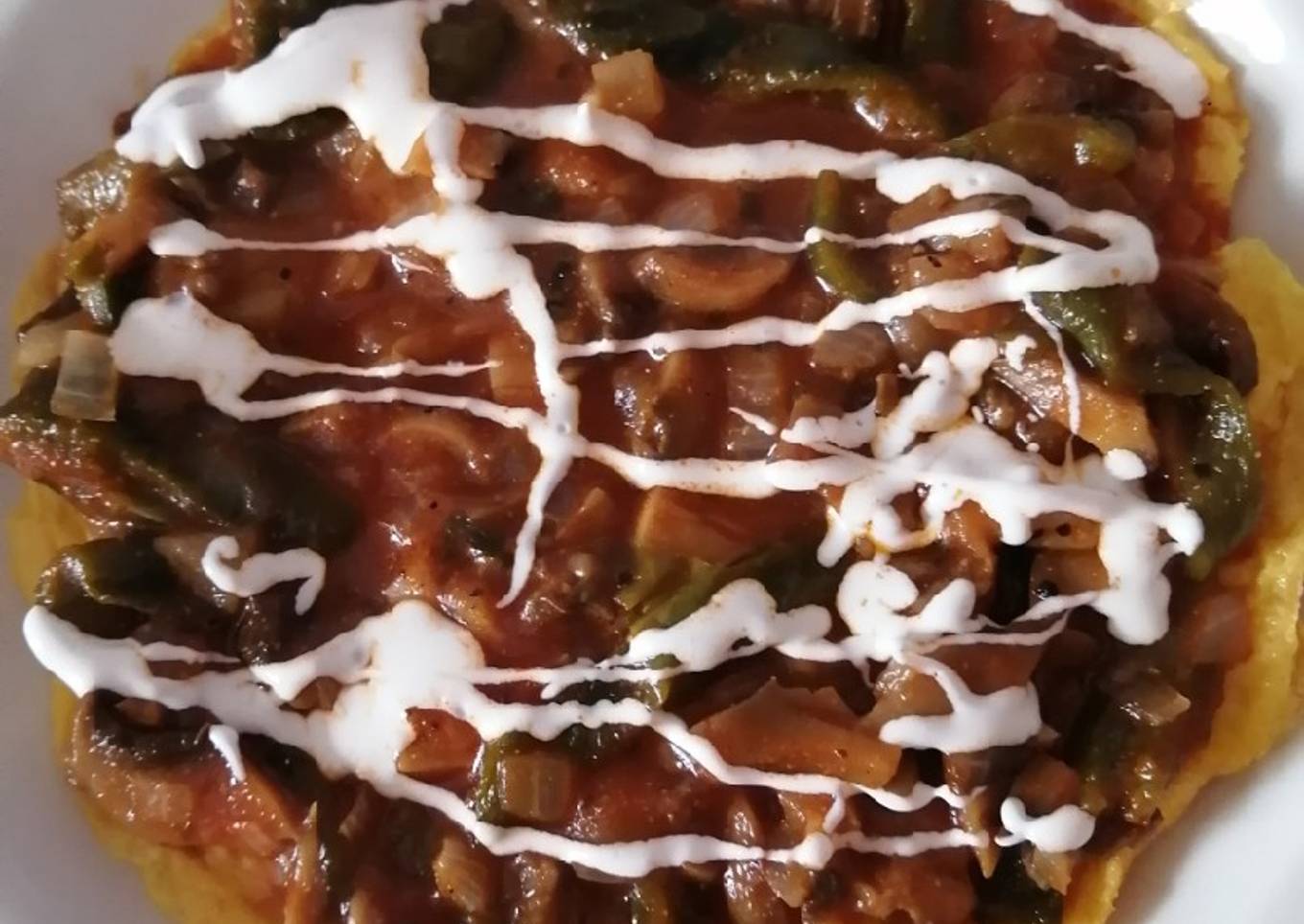 - Por último se coloca en un plato y se baña con la salsa, le ponemos un poco de crema y listo.