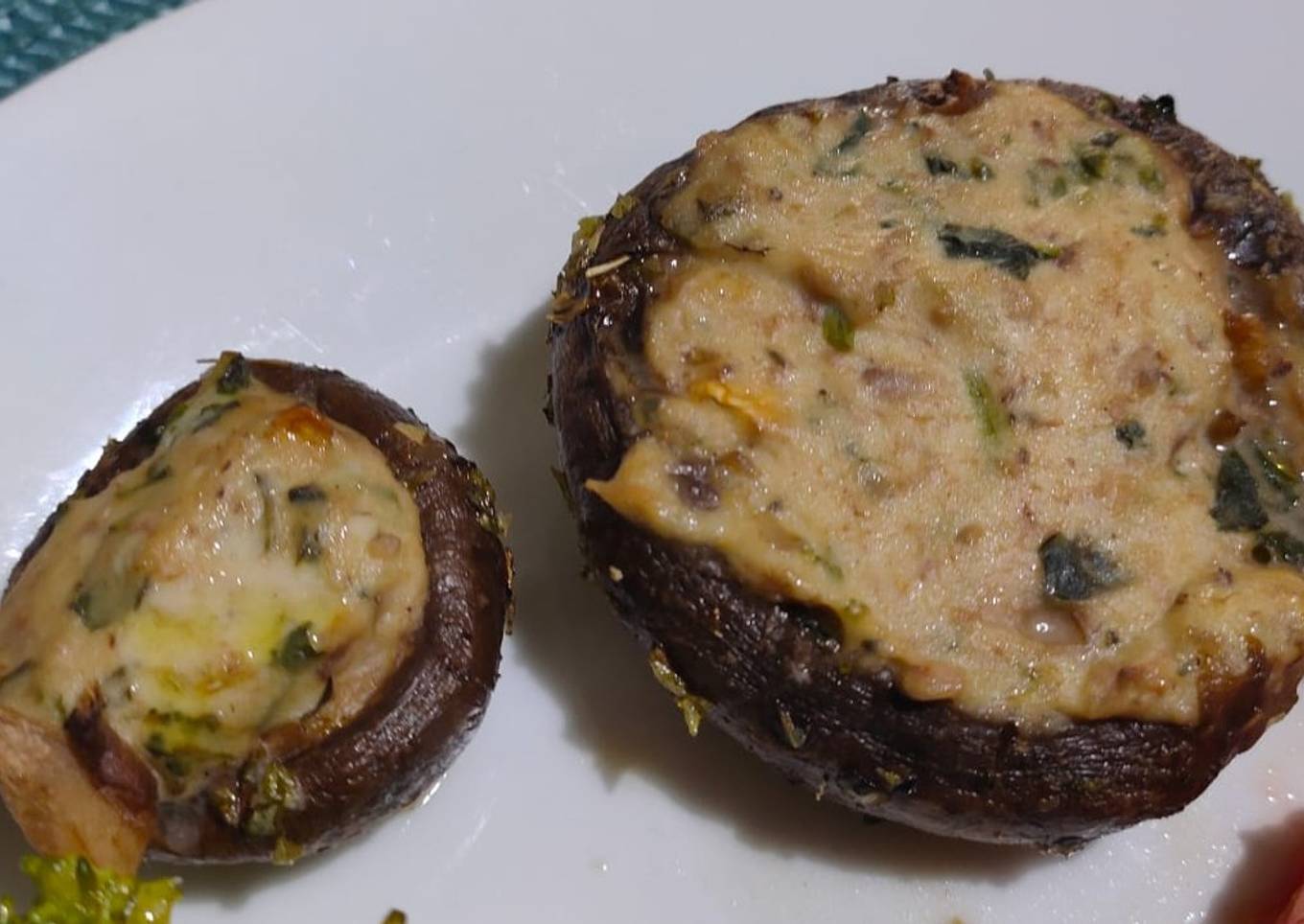 Champiñones rellenos con atún y crema