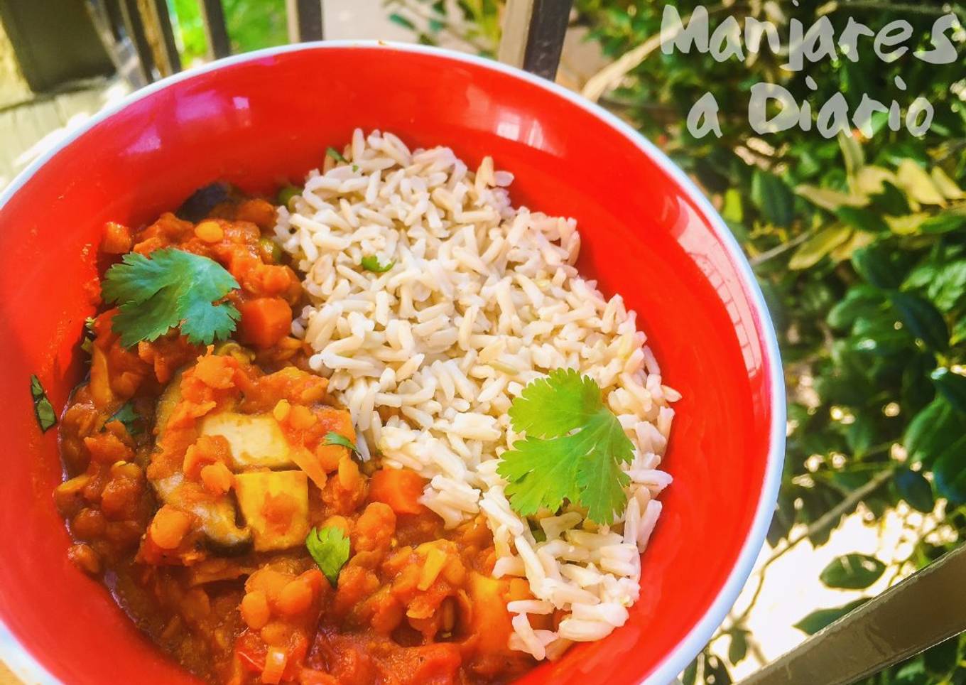 - Servir sobre una capa de arroz basmati integral y espolvorear cilantro picado por encima. Y para mayor detalle mirad el video!!! https://youtu.be/7_MoaAQCGFo