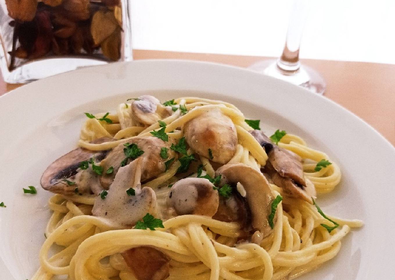 Espaguetis con champiñones a la crema