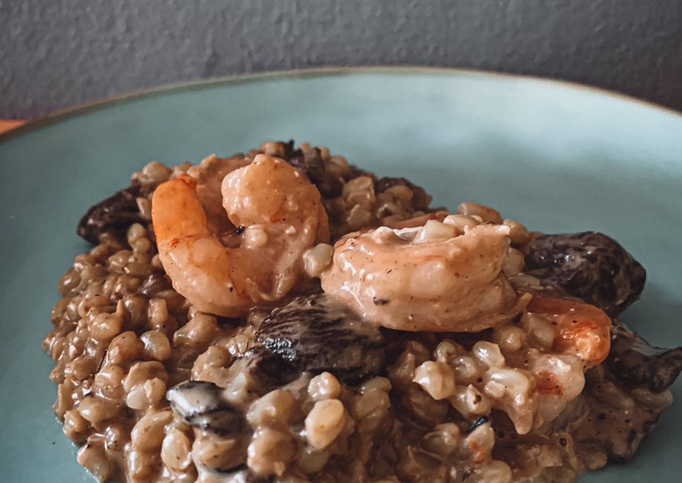 Risotto de mote con camarones y champiñones 🍄