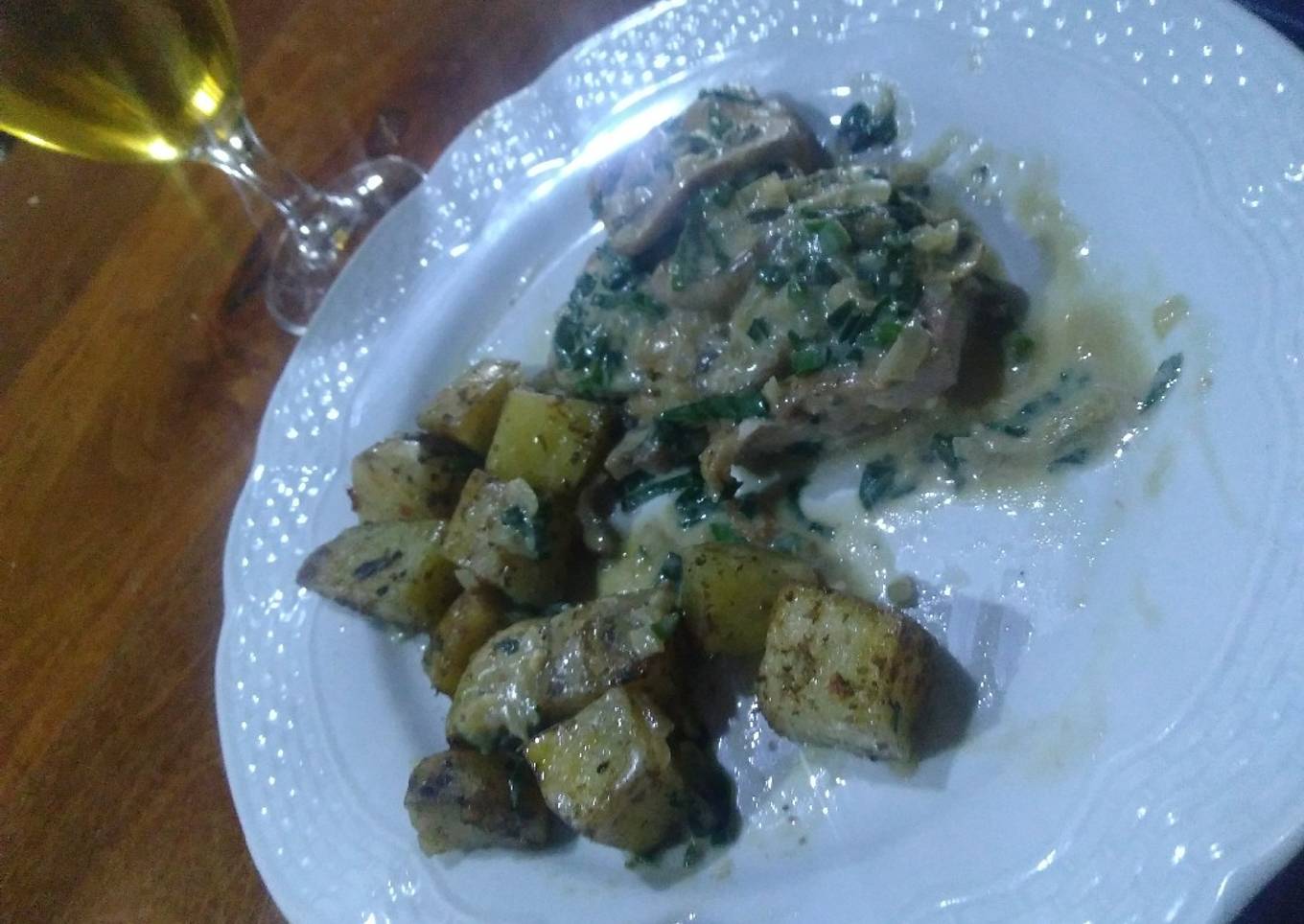 Pollo al verdiñon (verdeo y champiñón) con papas 🤔🤗🤗