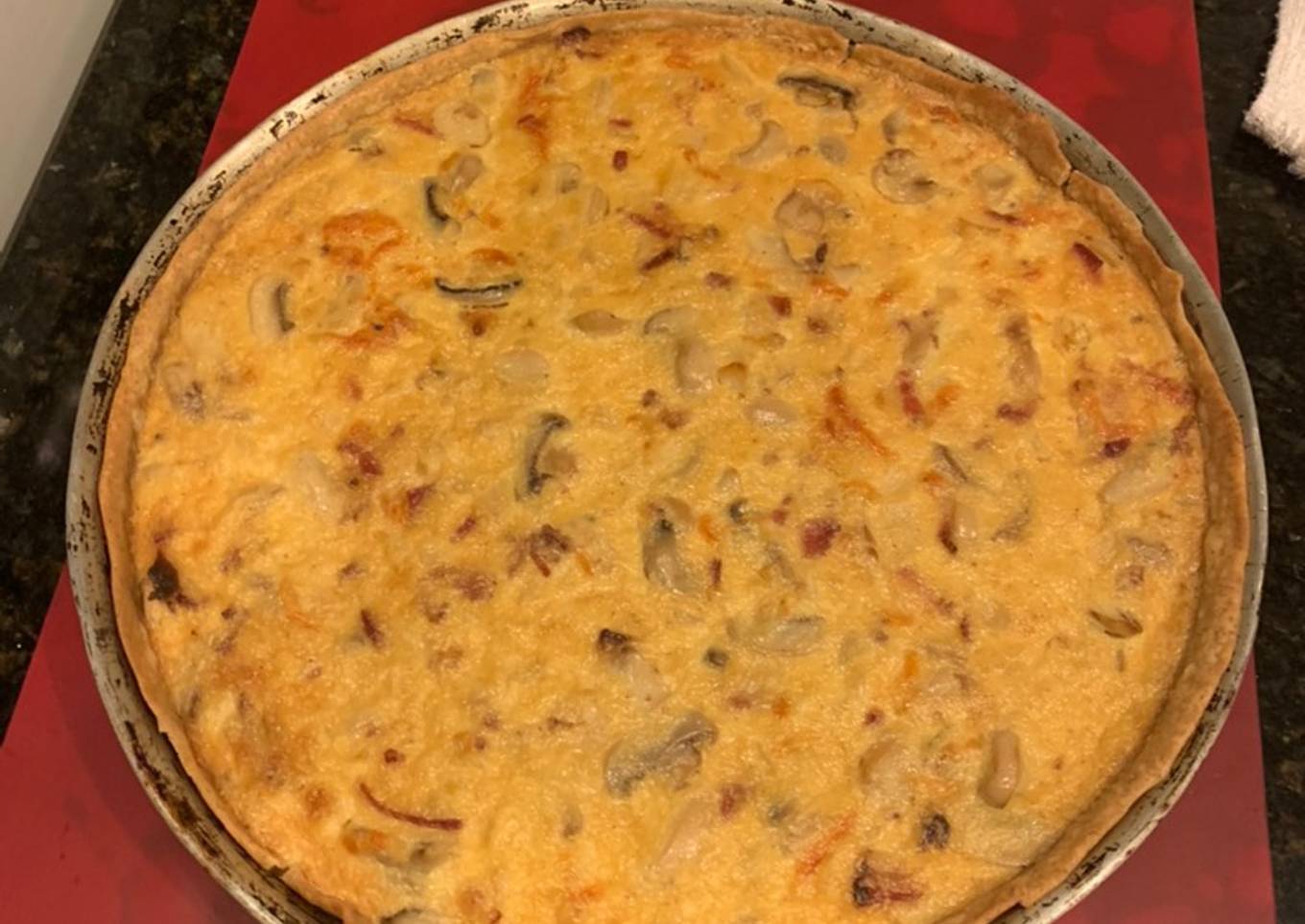Tarta de champiñones panceta y cebolla